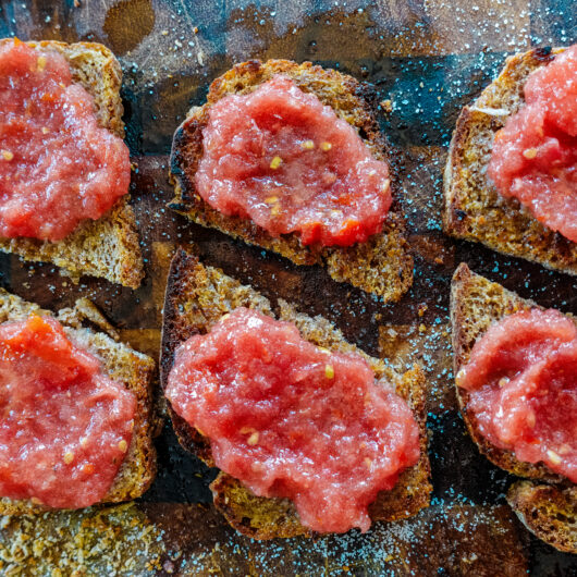 Pan con tomate is your ticket to Spain in a single bite! Crispy bread rubbed…